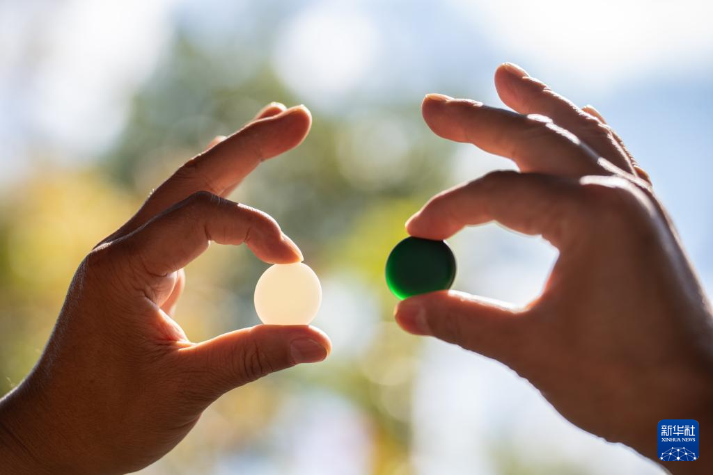 11月20日,在保山市永子棋院,李国伟查看永子的成色。新华社记者 高咏薇 摄