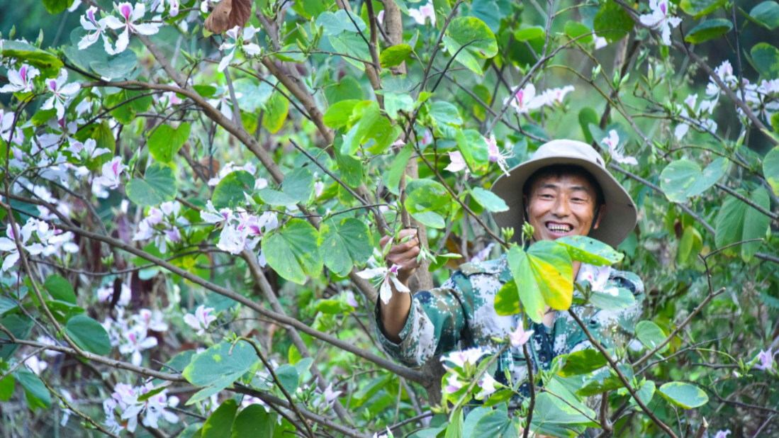 11月19日,李国伟在永子文化园挑选制作永子的原料。新华社记者 高咏薇 摄