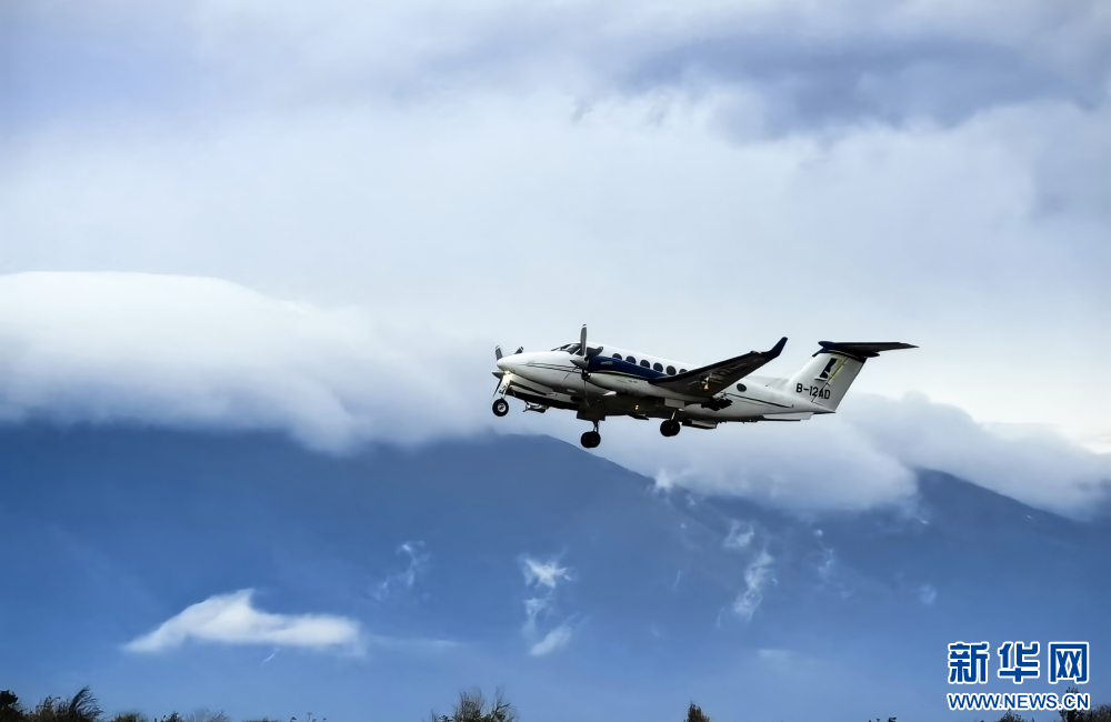 2024年11月21日,国王360飞机从大理基地起飞,前往昆明、玉溪、楚雄开展增雨作业,背景为苍山。(资料图)。新华网发(云南省气象局供图)